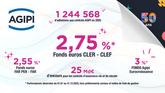 AGIPI annonce des taux de rendement en hausse en 2025 : 3,00 % pour son fonds euro-croissance et 2,75 % pour son fonds en euros.